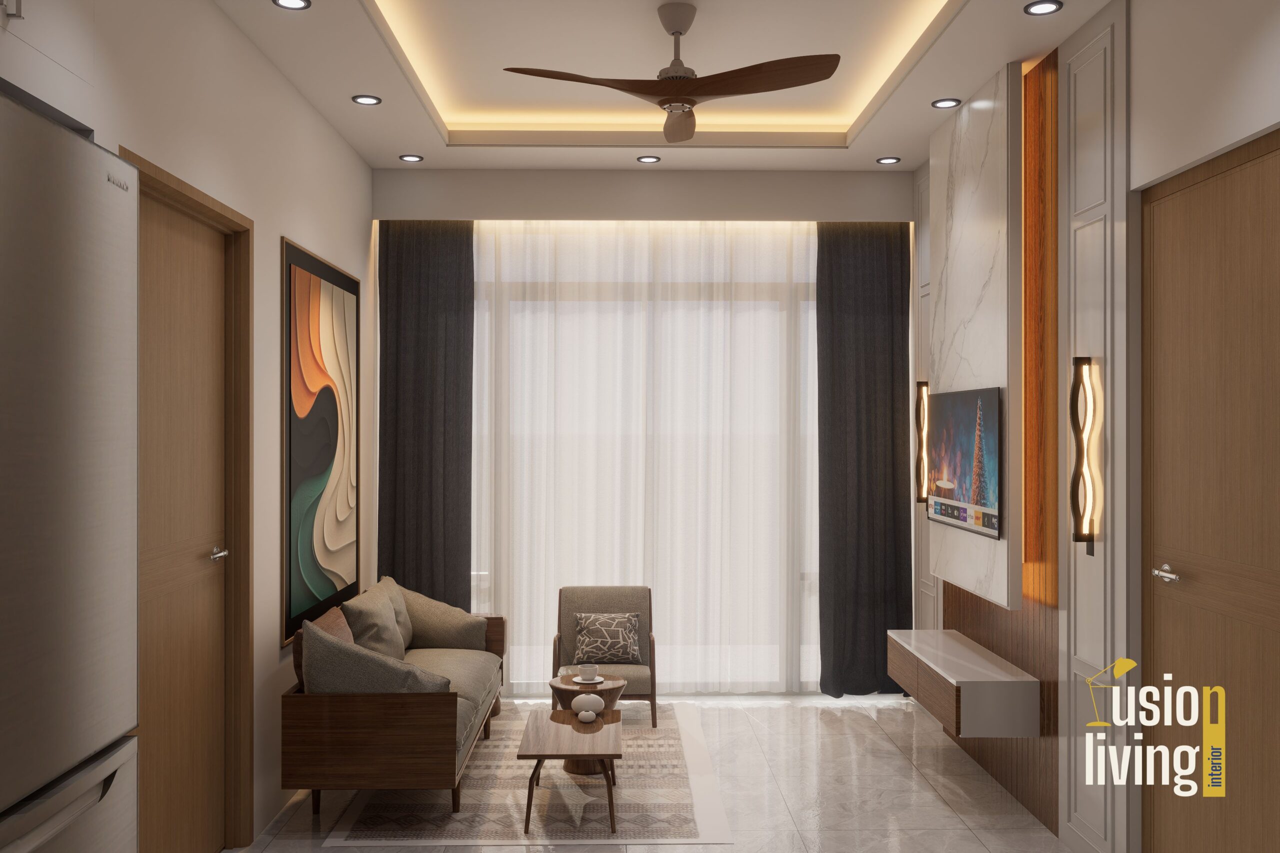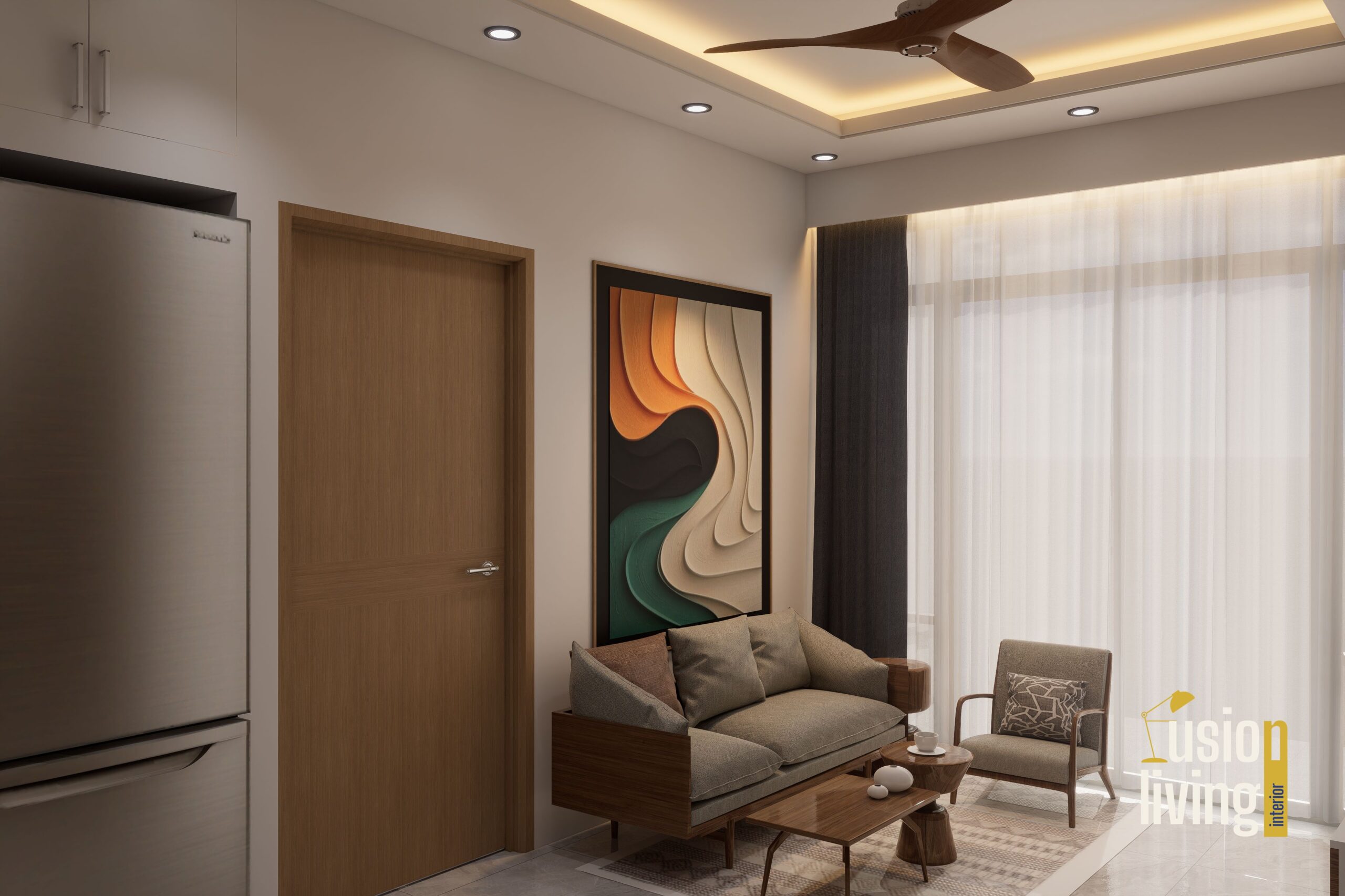 Impact: The apartment achieves a perfect balance of urban energy and tranquil retreat. Morning light filters softly through the jali screens, creating ever-changing shadow patterns, while evening ambient lighting transforms the space into a moody, intimate haven. Raw materials feel unexpectedly luxurious through thoughtful detailing, proving that sophistication needn't sacrifice warmth.